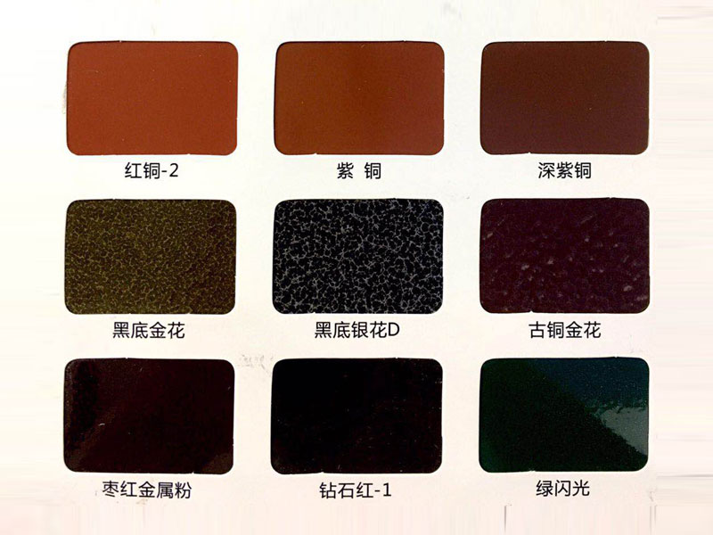 塑粉色卡是我公司主要生产的产品之一。产品具有**的流平性、附着力强、耐高温、高光泽、美术立体感强等特点。主要产品有纯聚酯型、纯环氧型、混合型、金属型、美术型等系列的高光、哑光、无光、磨砂、锤纹、大理石纹、仿铜系列、仿金属漆系列等三十多个类型上千个色别的粉末涂料。