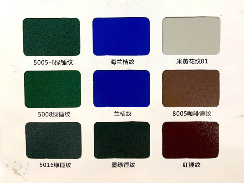 塑粉色卡是我公司主要生产的产品之一。产品具有**的流平性、附着力强、耐高温、高光泽、美术立体感强等特点。主要产品有纯聚酯型、纯环氧型、混合型、金属型、美术型等系列的高光、哑光、无光、磨砂、锤纹、大理石纹、仿铜系列、仿金属漆系列等三十多个类型上千个色别的粉末涂料。